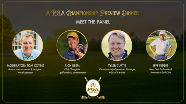 Moderated by acclaimed author and golf storyteller Tom Coyne, the evening features a dynamic panel including PGA Champion Rich Beem, Tyler Curtis, the PGA of America’s Championship Operations Manager, and Aronimink’s own Head Golf Professional Jeff Kiddie. Together, they’ll share insider perspectives on course preparation, championship play, and what fans can expect when the world’s best golfers arrive.