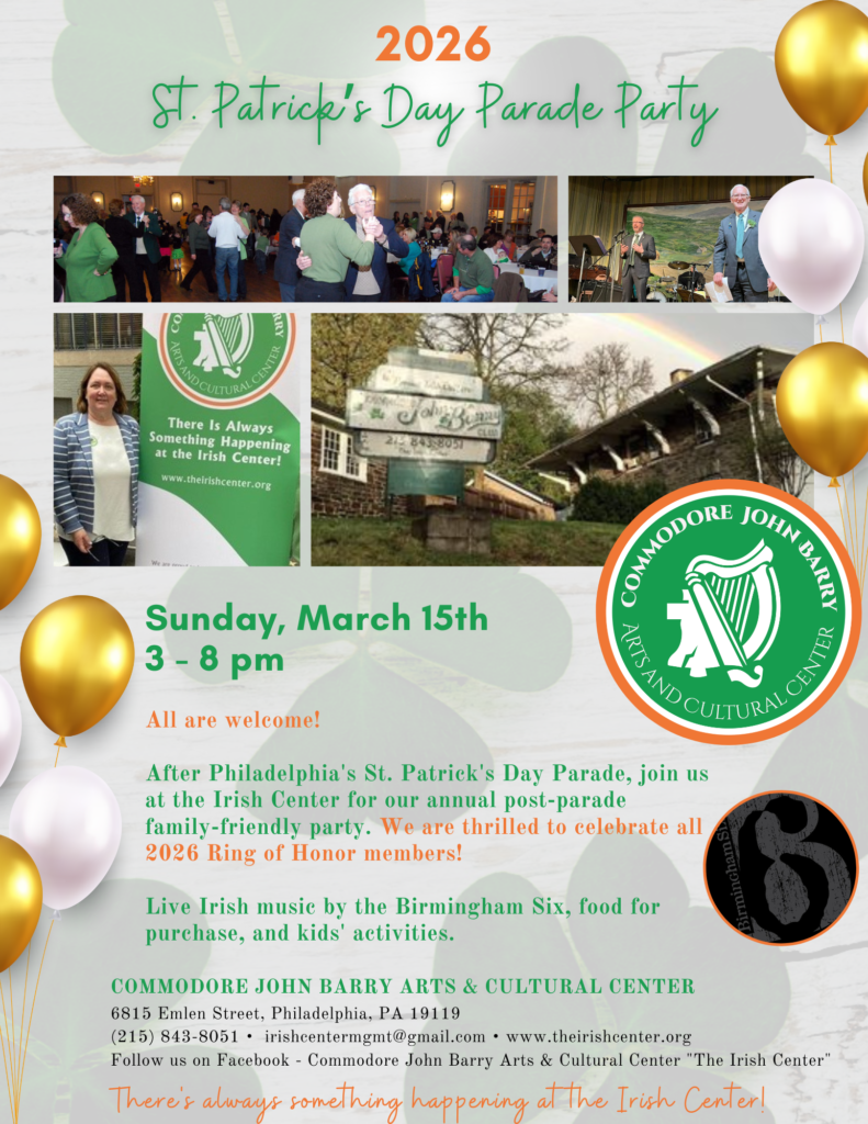 We are looking forward to a wonderful day for Philadelphia’s Annual St. Patrick’s Day Parade. You can walk along side our double-decker bus, or hop on for a rest. All are welcome – bring your family & friends! After the parade, join us at the Irish Center’s Family-Friendly Parade Party.